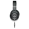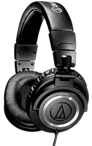 With the ATH-M50 professional studio monitor headphones, Audio-Technica has achieved an exceptionally accurate response and long-wearing listening comfort. Designed especially for professional monitoring and mixing, these studiophones feature an efficient collapsible design for space-saving portability and storage. Circumaural ear pieces swivel 180° for easy one-ear monitoring and luxuriously padded ear cushions create an outstanding seal for maximum isolation. The adjustable headband is generously padded for ultimate comfort during long mixing sessions. A coiled cable at the left earpiece terminates to a gold-plated mini-plug with included screw-on ¼" adapter.