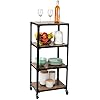 There are so many ways one can use the Mind Reader 4 shelf charm utility cart. From the office, home office, kitchen, or even the bathroom, this utility cart converts any space to extra storage space. Casters on the bottom of the cart provide easy mobility throughout. Three shelves provide plenty of room and easy access for your stored items. Use the utility cart in your office to provide a spot for books, binders, printer paper and supplies. In the kitchen, it's great for storing cereals and containers. Use it to store books, magazines and photo albums in your family room, and even a bar. This cart is made of sturdy metal with wood shelves that looks great in any space.