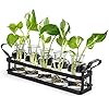 Mkono Propagation Stations with Metal Stand, Desktop Plant Terrarium Glass Planter Vase for Hydroponic Plants Flower Cutting Home Office Garden Decor Plant Lover Gifts, 5 Jars