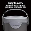 - Easy to carry with built-in handle and spill-proof lids