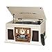 - Features 3-speed turntable, Bluetooth connectivity, USB player, CD player, cassette player, FM radio with analog tuner, and 3.5mm aux-in