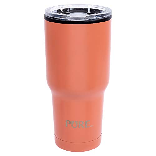 PURE 700ml Stylish Double Wall Plastic Liner Coffee Tumbler Travel Mug, 24 oz, Coral Pink