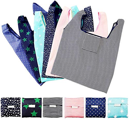 6 Pack Reusable Shopping Grocery Pouch Bags Washable Foldable Shopping Tote Bag