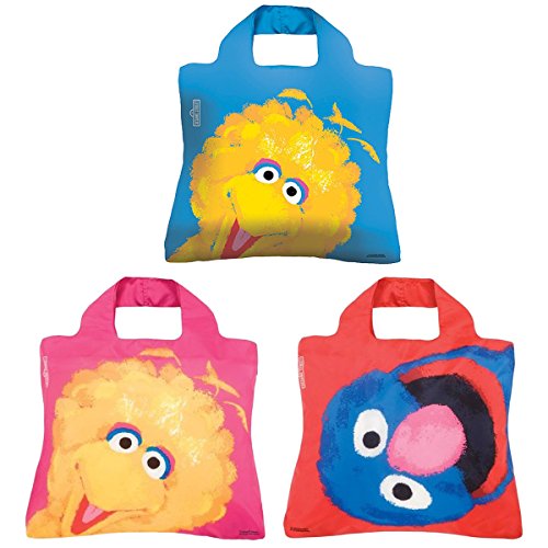Envirosax Sesame Street Pouch, Set of 3 Reusable Shopping Bags, Big Bird & Grover